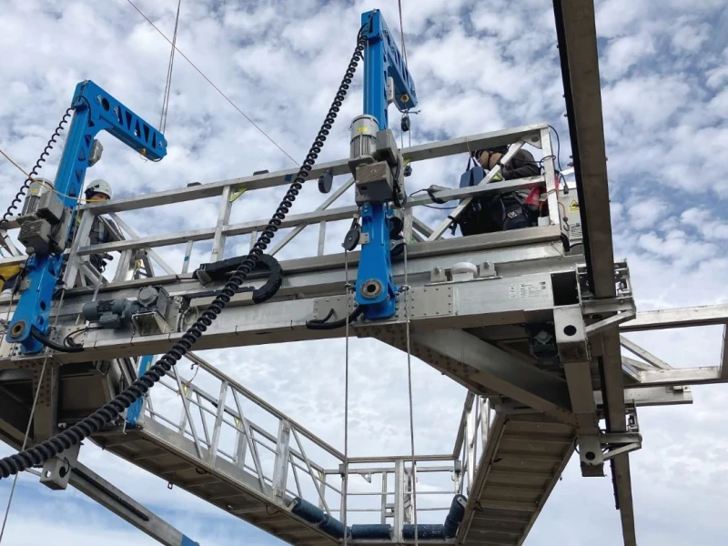 Our System Aer is in operation in the US! Designed for maximum flexibility, it reaches distances of up to 19.2 meters between the blade and the tower, making it the perfect solution for maintenance work on the largest wind turbines.