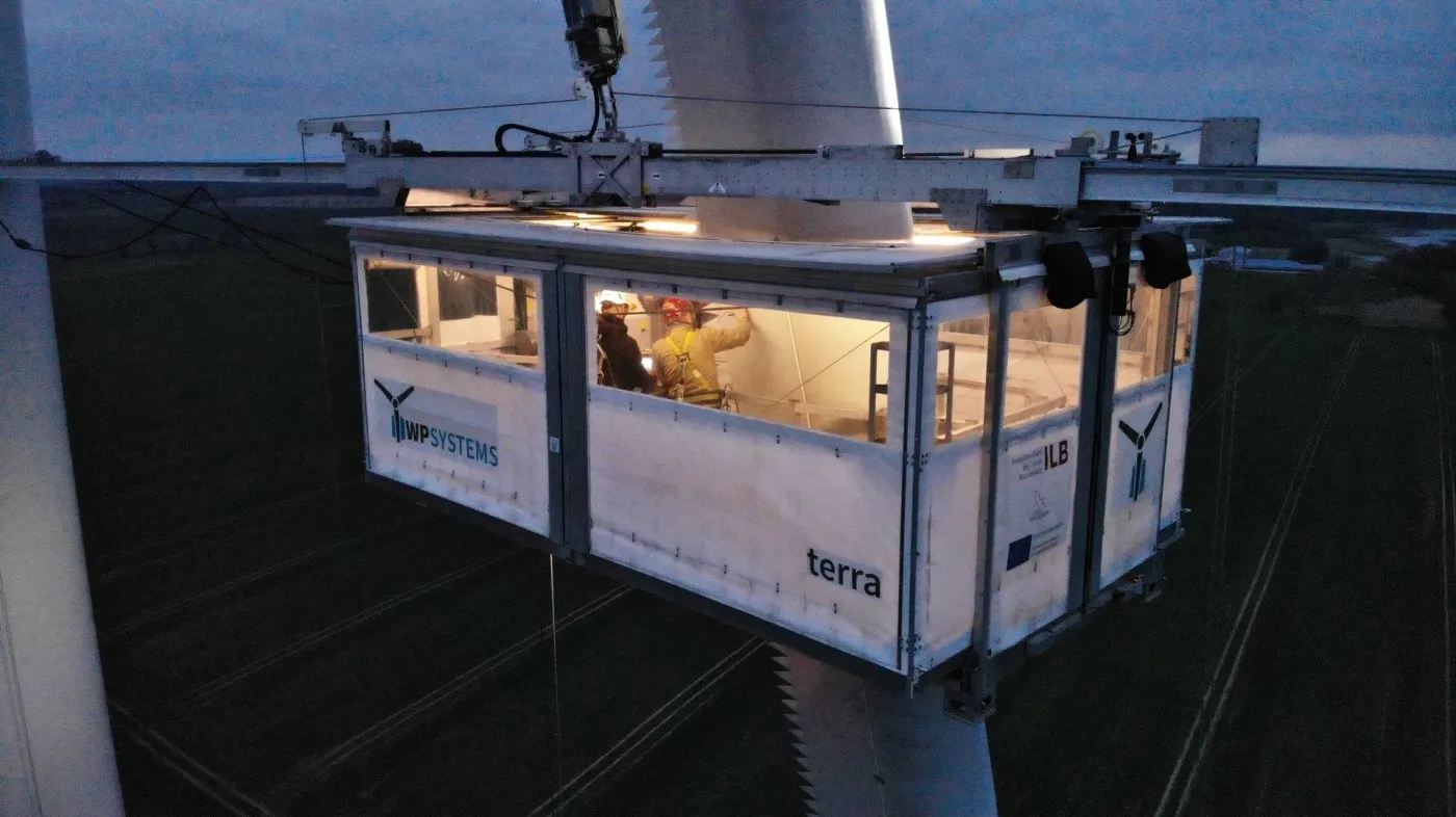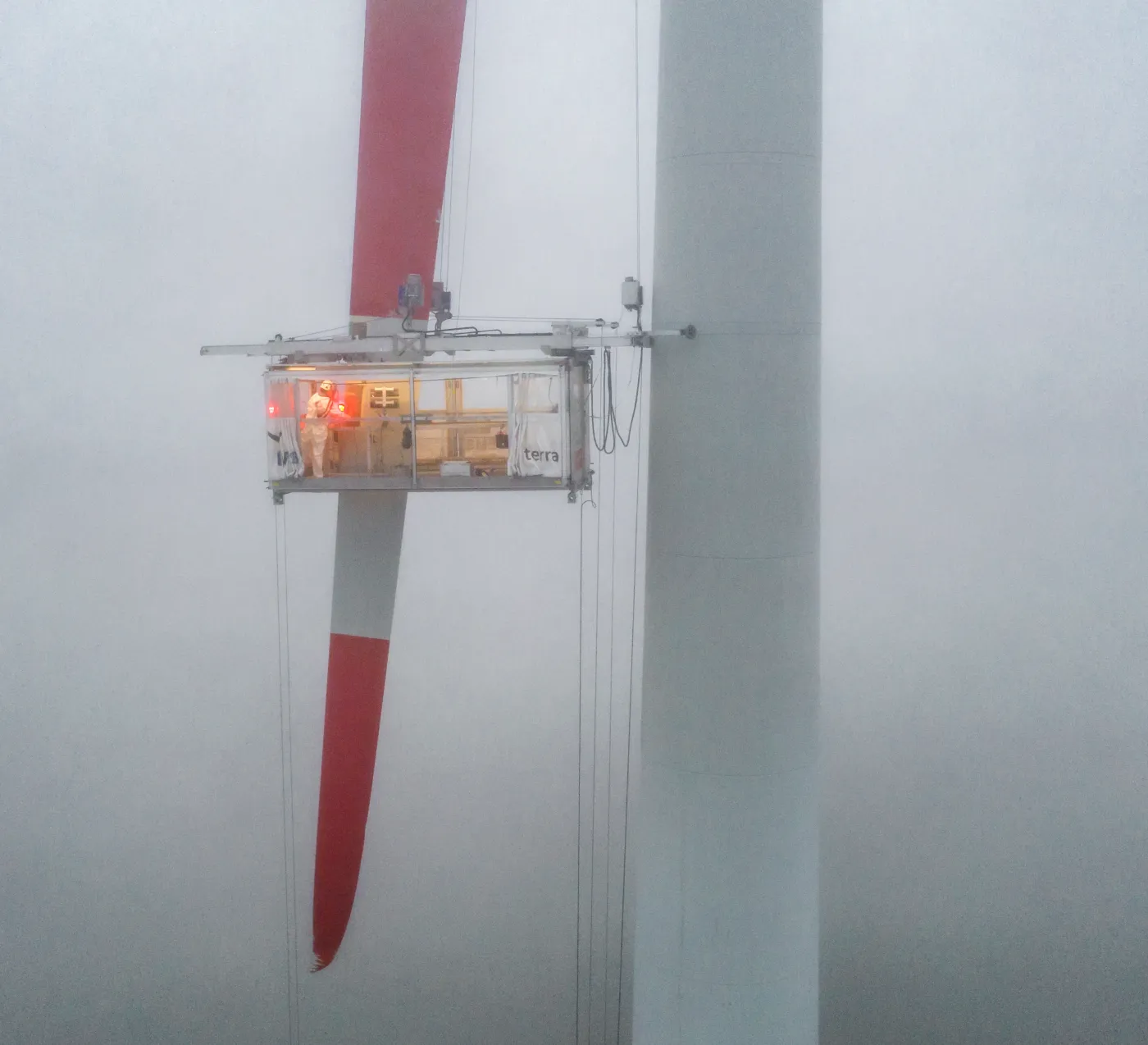 The System Terra 1.1 features a weatherproof workspace that keeps you protected from the elements while you carry out repairs in workshop-like conditions. Equipped with integrated heating and lighting, the fully enclosed platform offers a spacious, comfortable workspace with a variety of storage options and excellent access to all sides of the rotor blade.