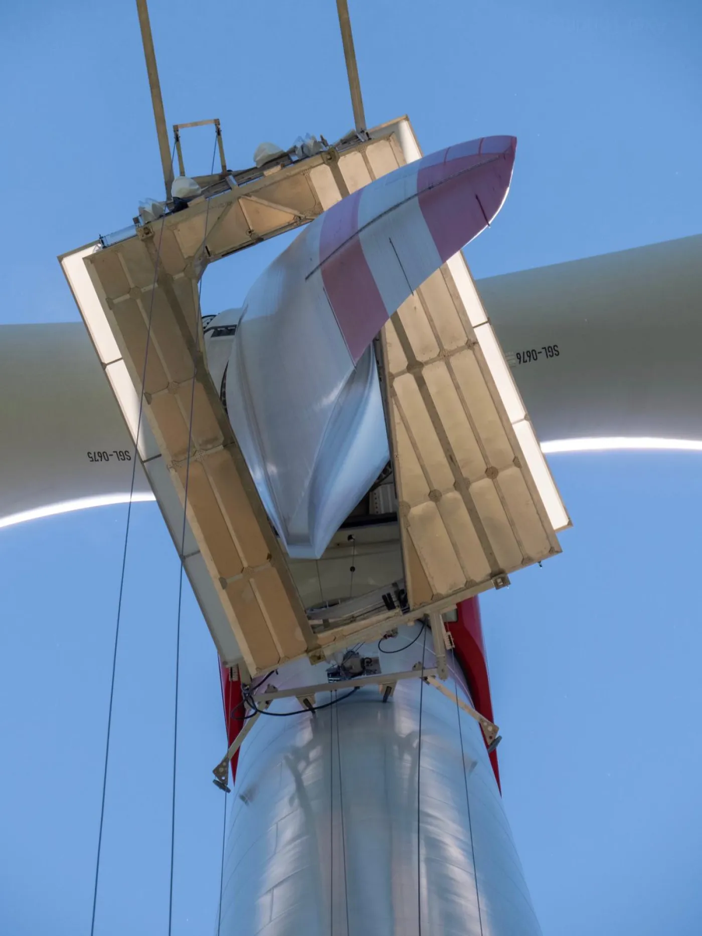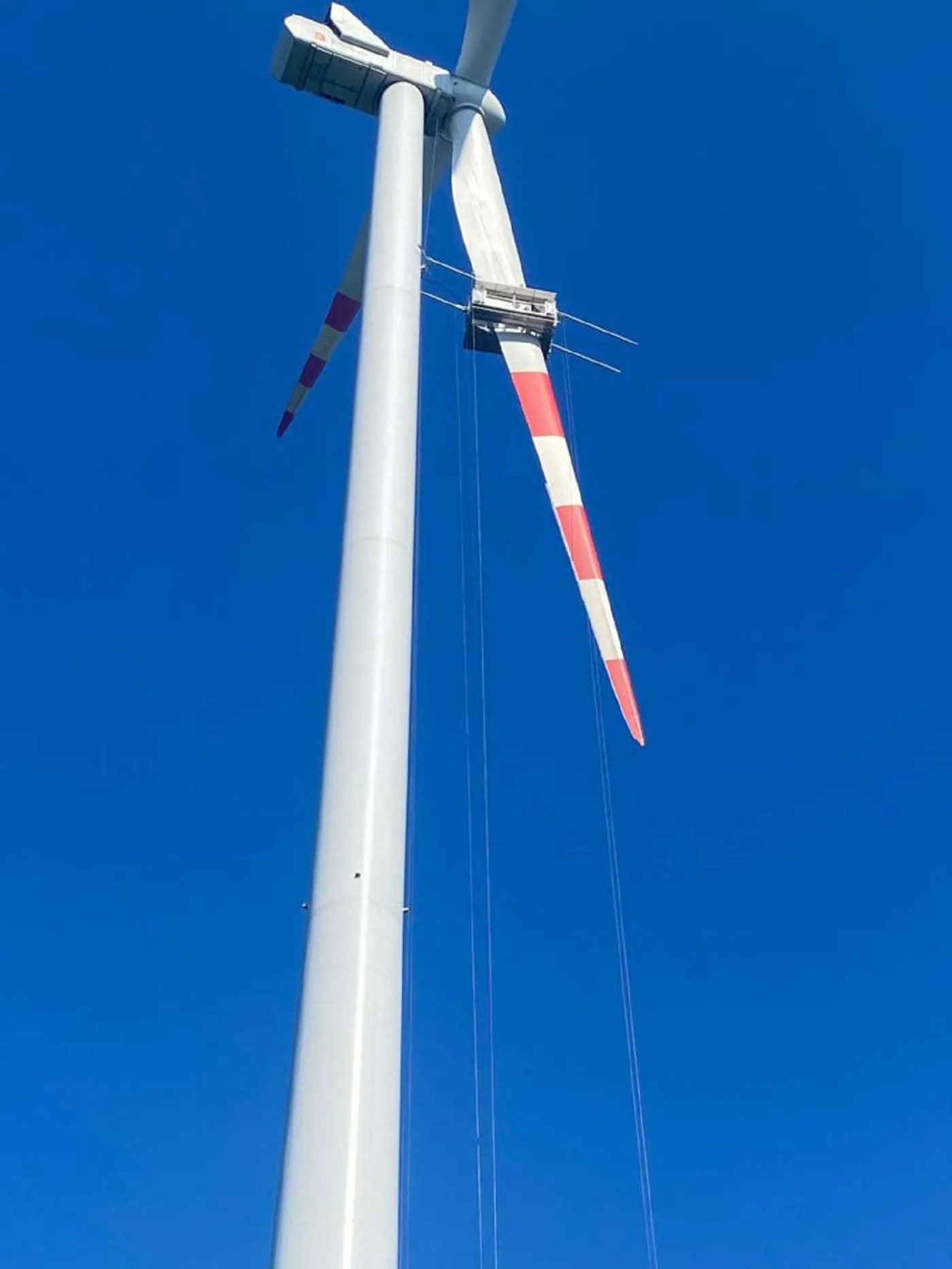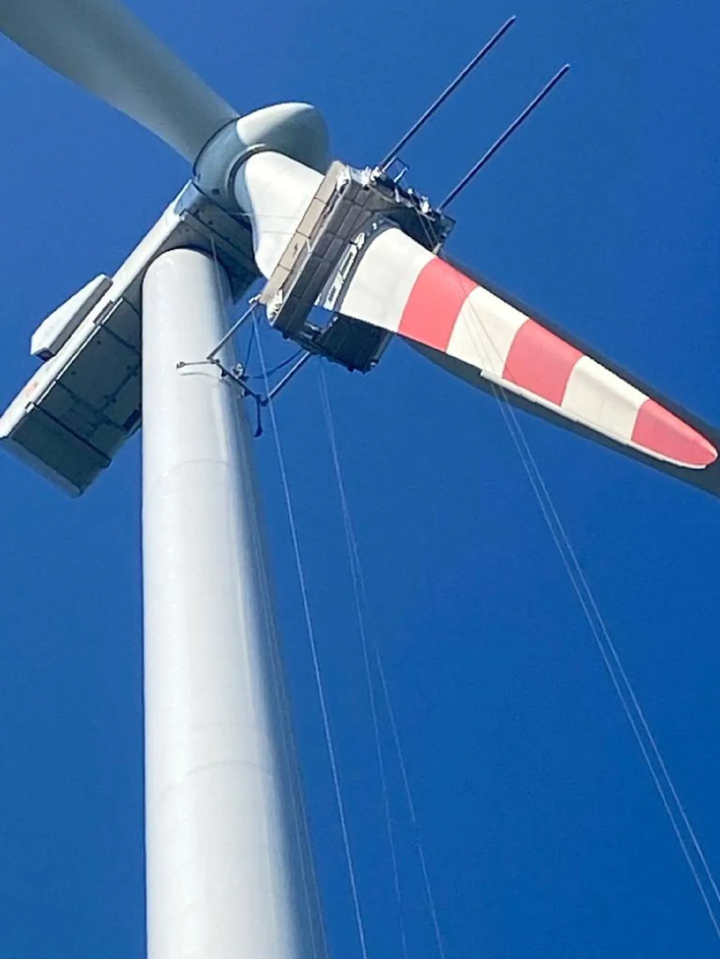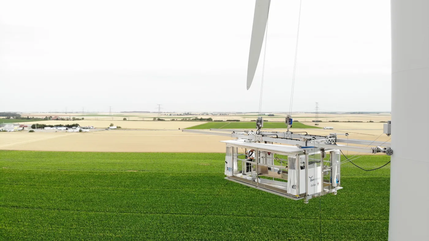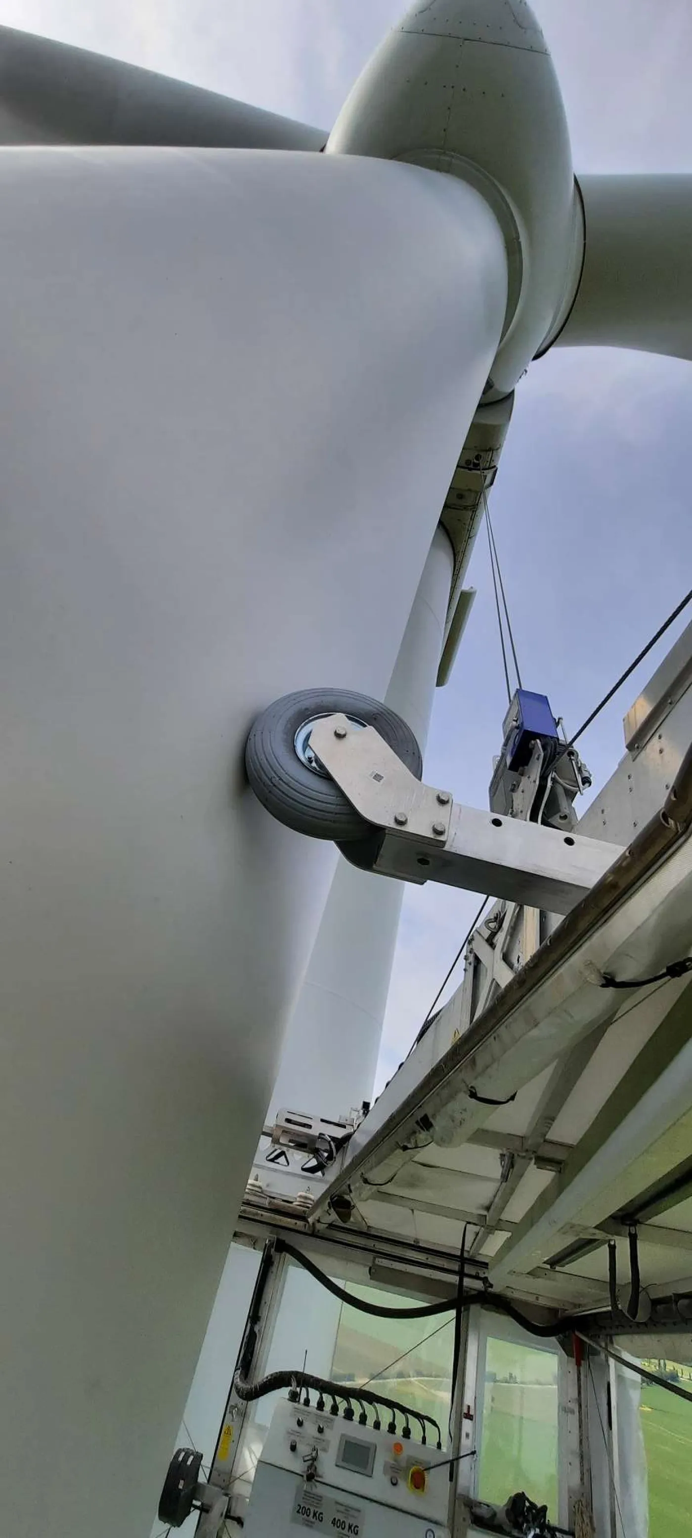 The enclosed working area of the Terra 1.1 blade access platform has a rotation function, allowing it to follow the twist of the rotor blade. As a result, the gaps between the blade and the roof / floor of the platform can be minimized at every point along the rotor blade. This enables optimised 360° access to the rotor blade and provides effective protection against the elements.