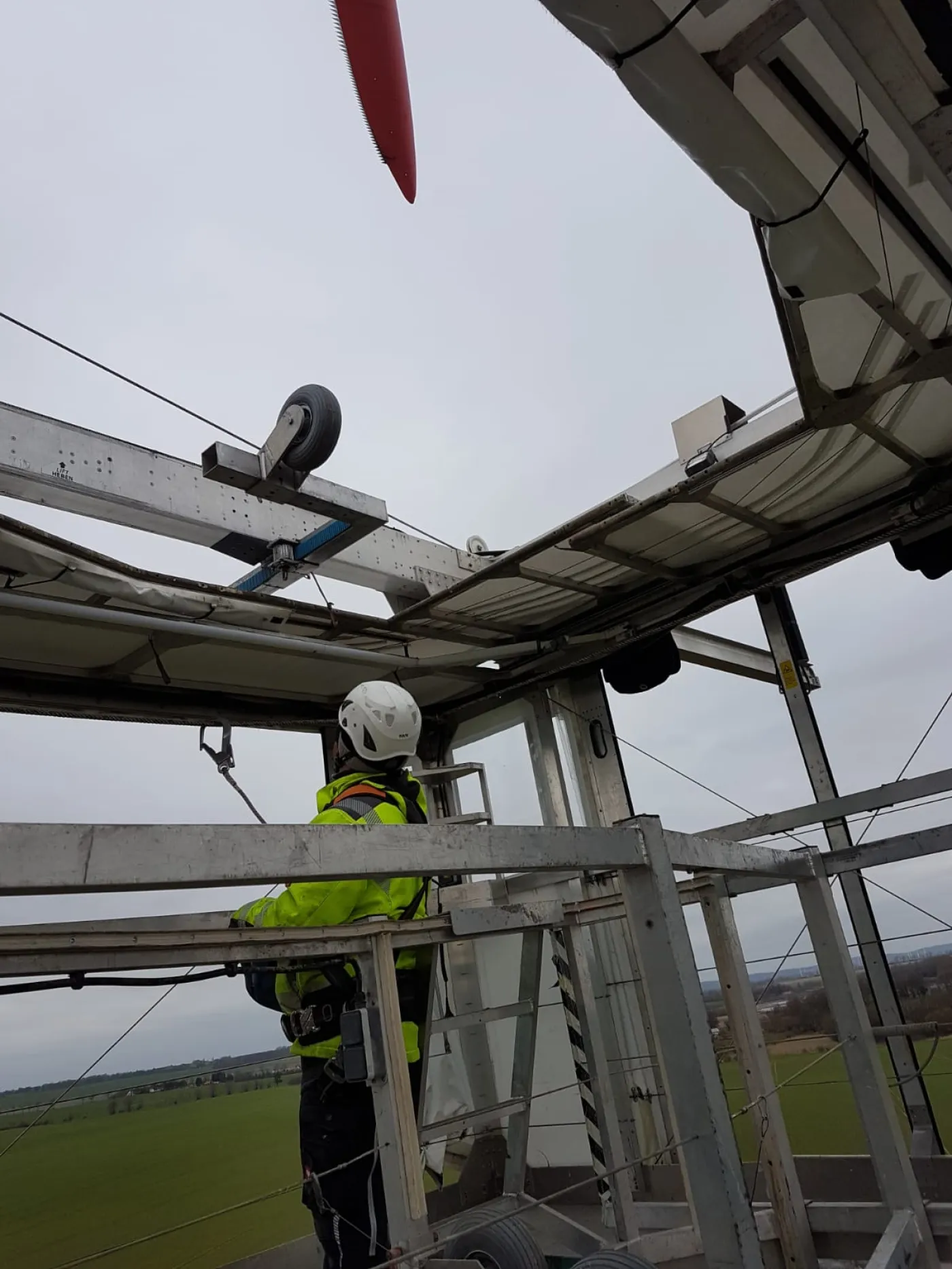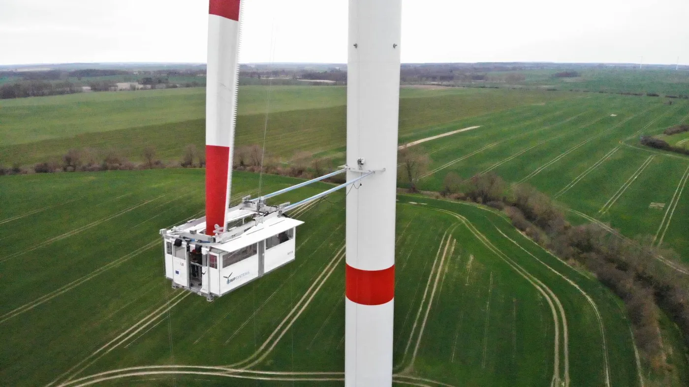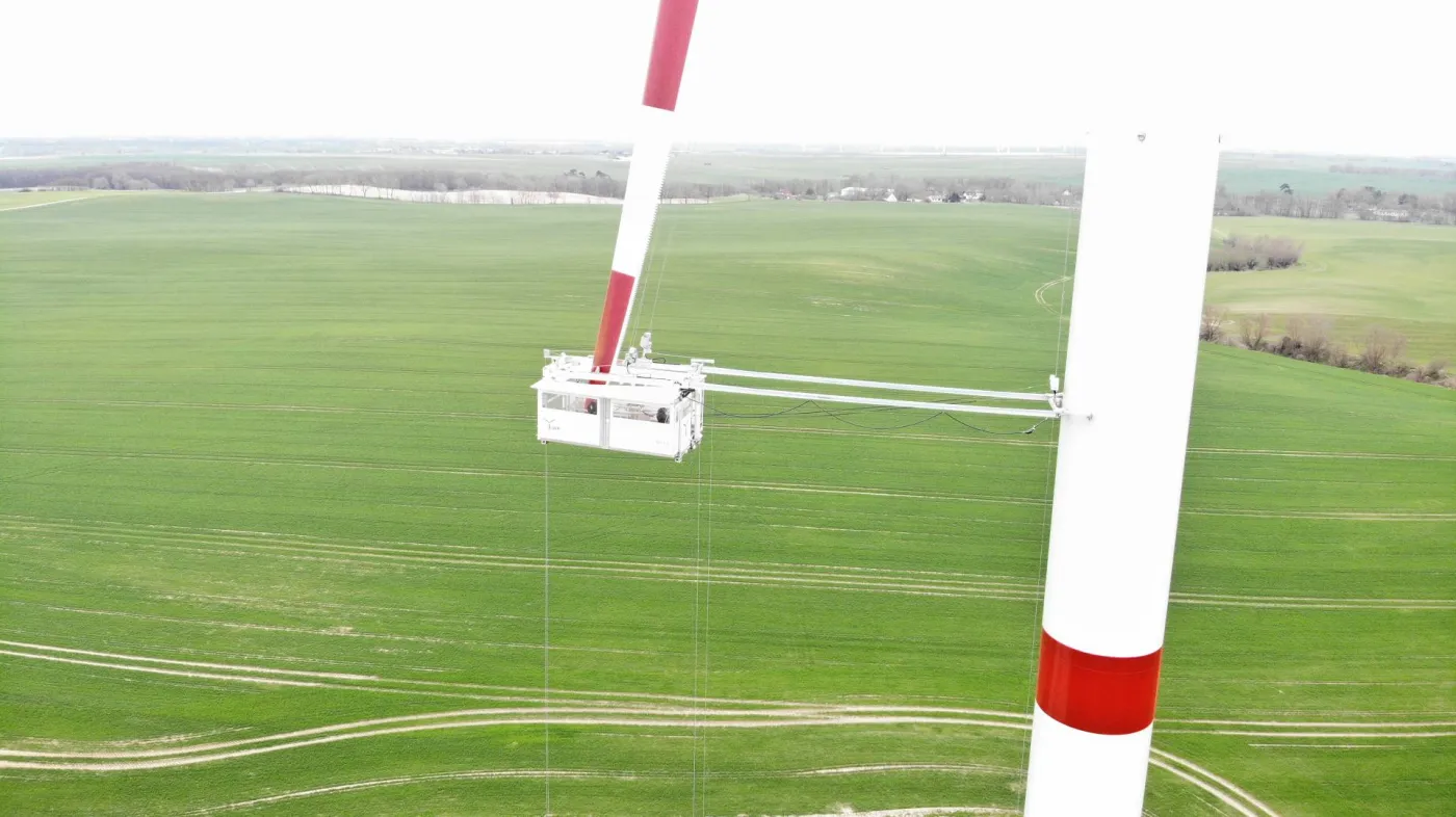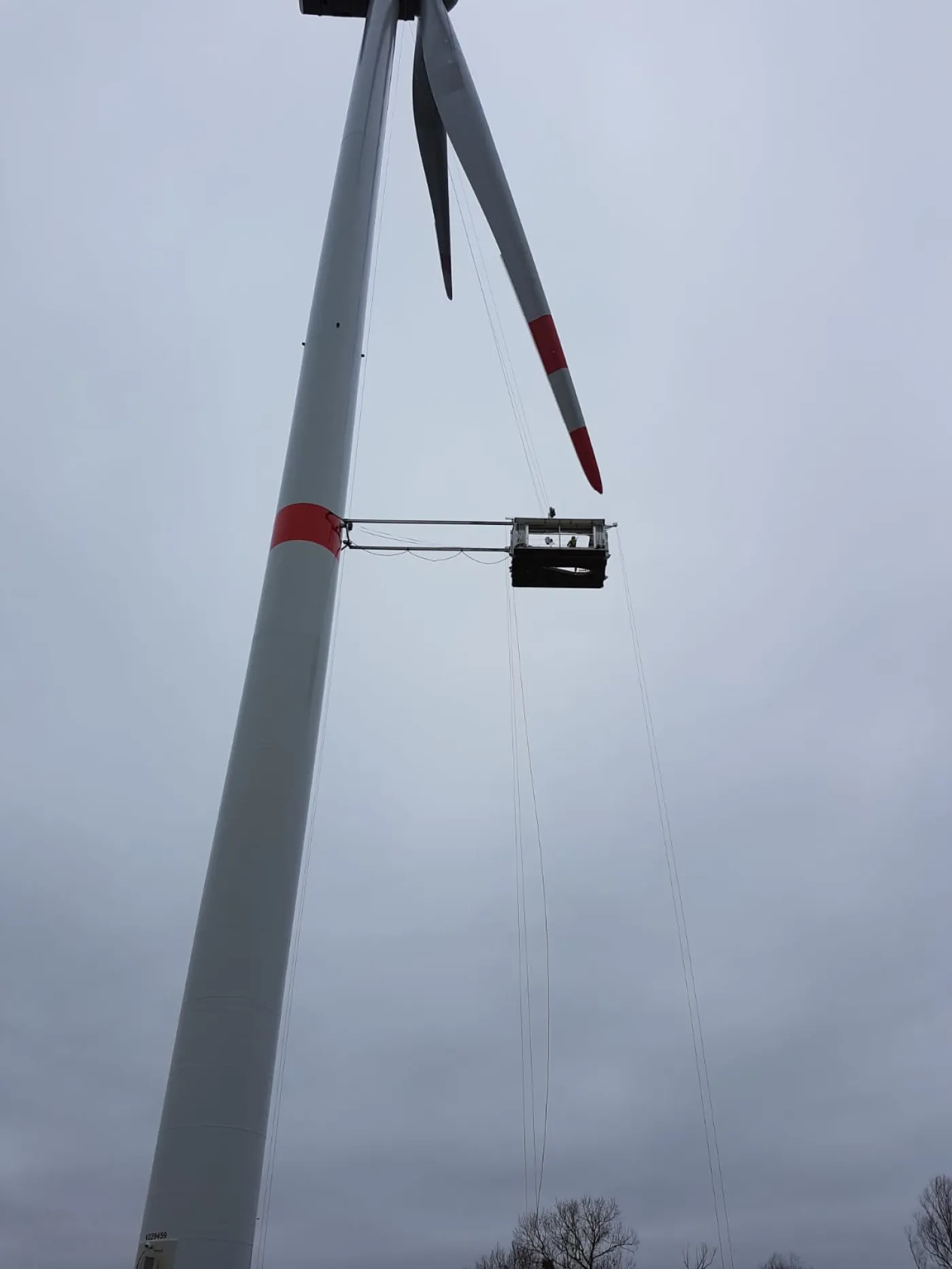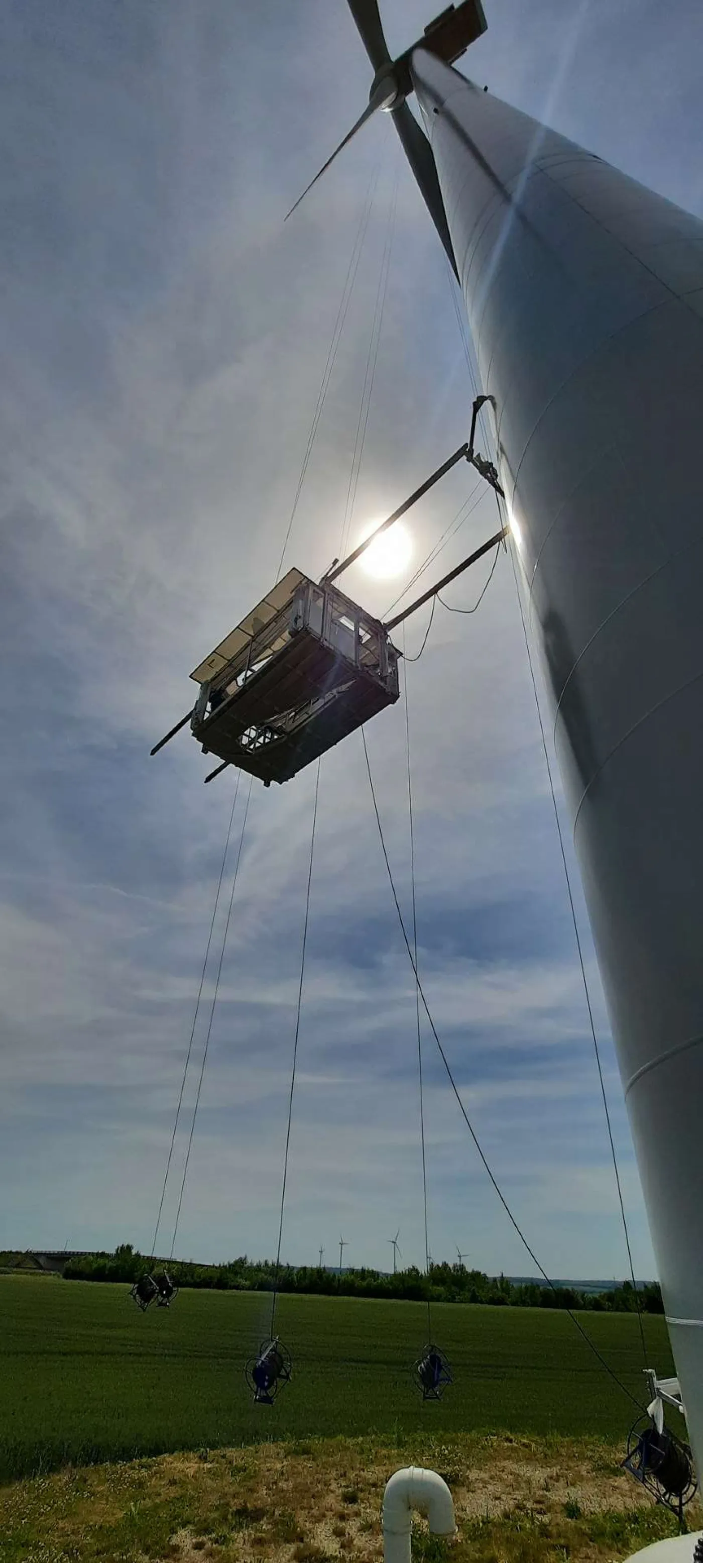 The System Terra 1.1 is built for maximum safety and reliability, even on large wind turbines and in strong winds. Its triple winch system, combined with an integrated crosswind detection function, prevents the platform from tilting, while anchoring points for overhead safety harnesses provide extra protection for service technicians.